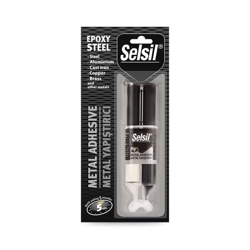 Selsil Metal Yapışqan, epoksi əsaslı sürətli müalicəli iki komponentli bir yapışdırıcıdır.